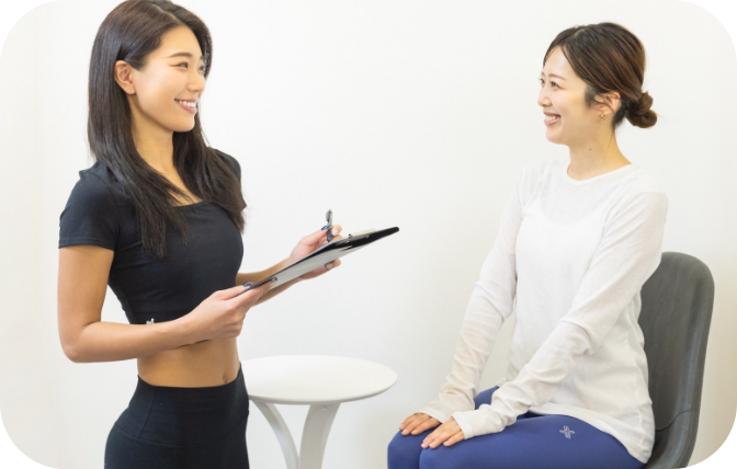 ご来店後に現在のお身体のお悩みや、運動習慣などお伺いし、